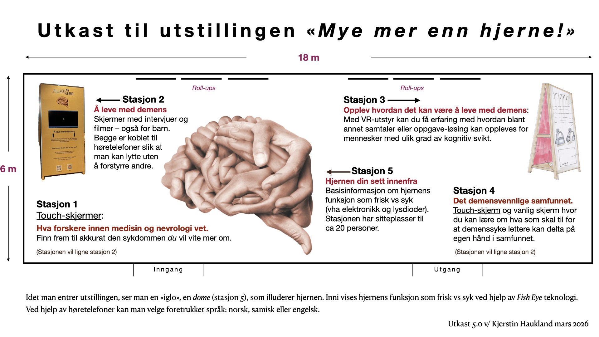 I hjertet av utstillingen skal vi ha en dome /en “kuppel” man kan gå inn i for å få et inntrykk av hvordan hjernen vår fungerer.